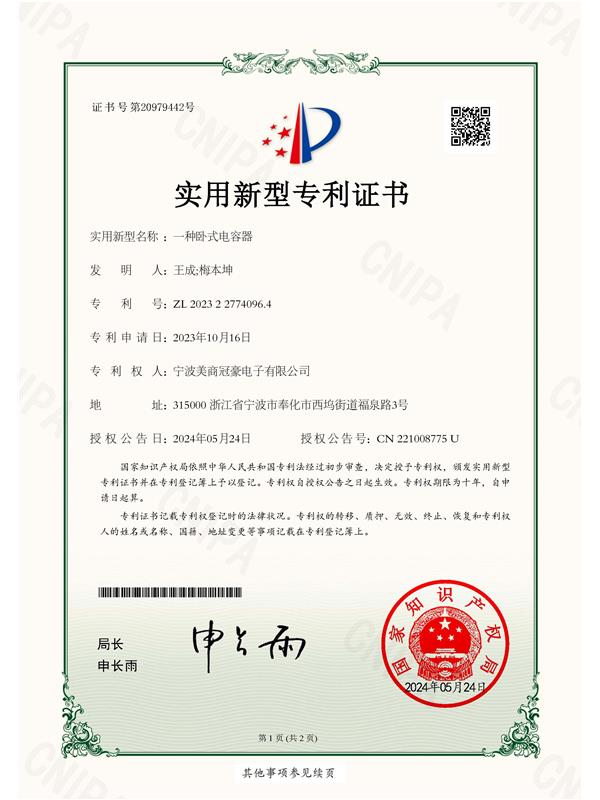 • 實(shí)用型專利證書(shū)